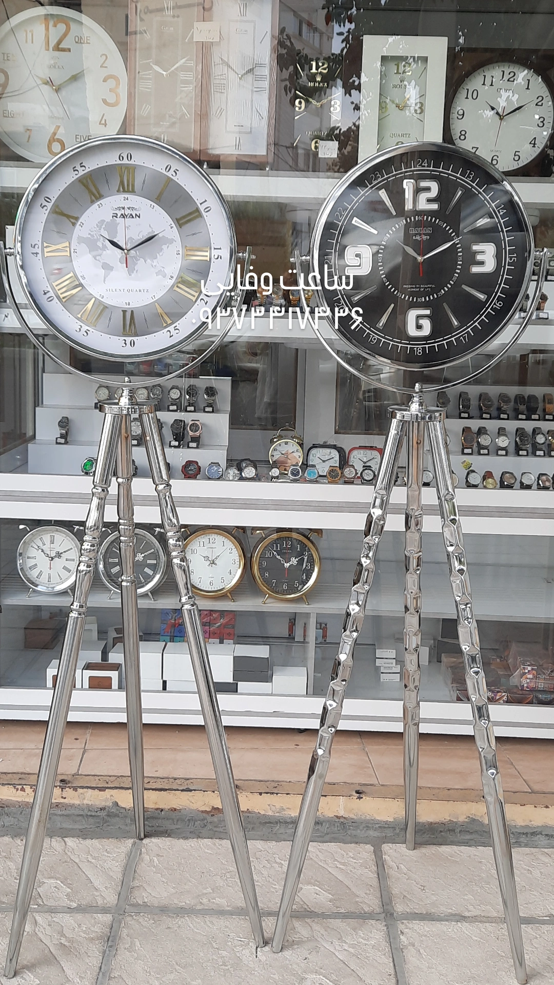 ساعت ایستاده سه پایه نقره ای رایان
