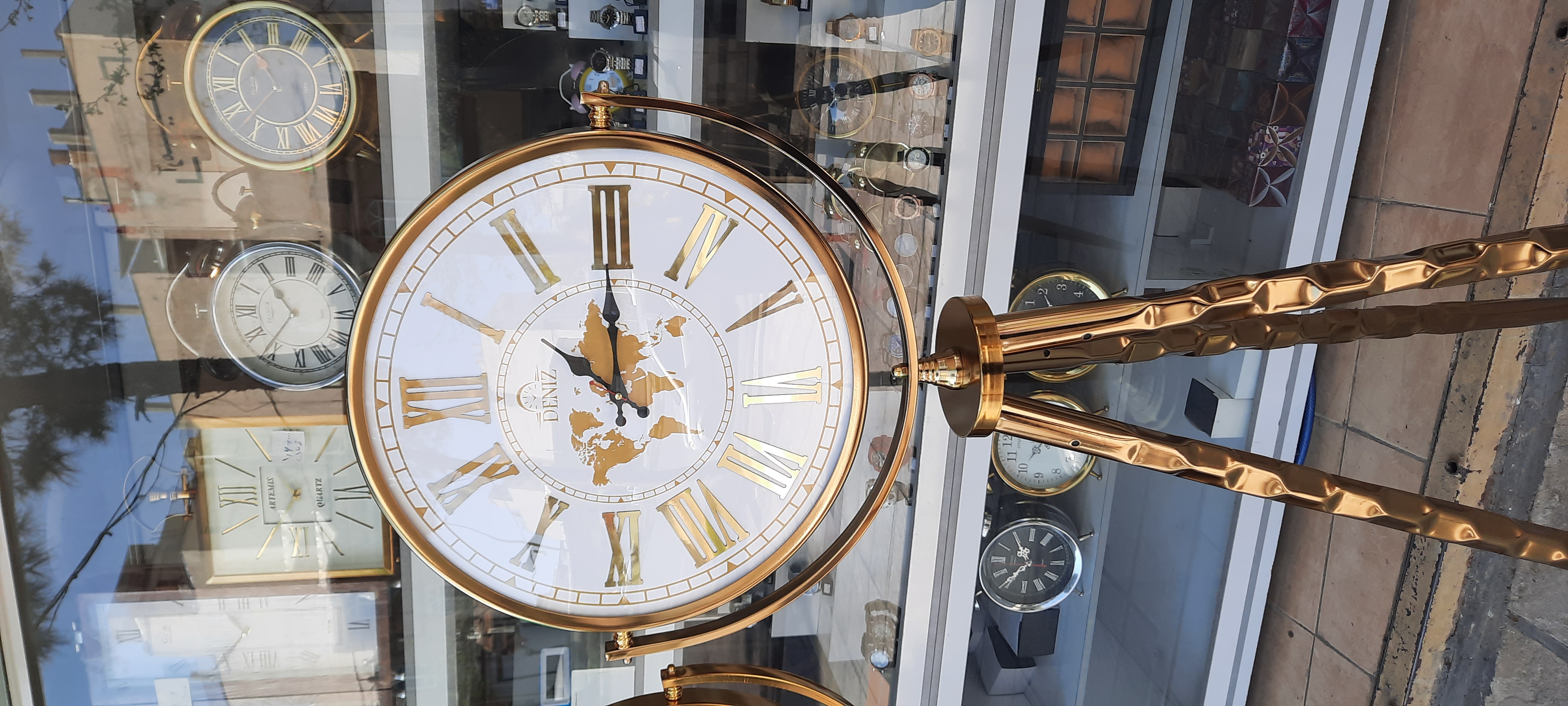 ساعت ایستاده سه پایه فلزی طلایی