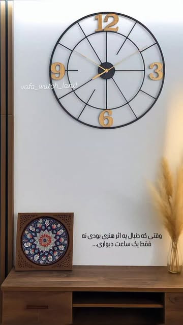 یک ساعت میتونه یک اثر هنری باشه که از دل پینترست بیرون اومده فلز با رنگ مات کوره ای اعداد و عقربه ها چوبی رنگ طلایی، مشکی، نقره ای دارای یکسال گارانتی موتور