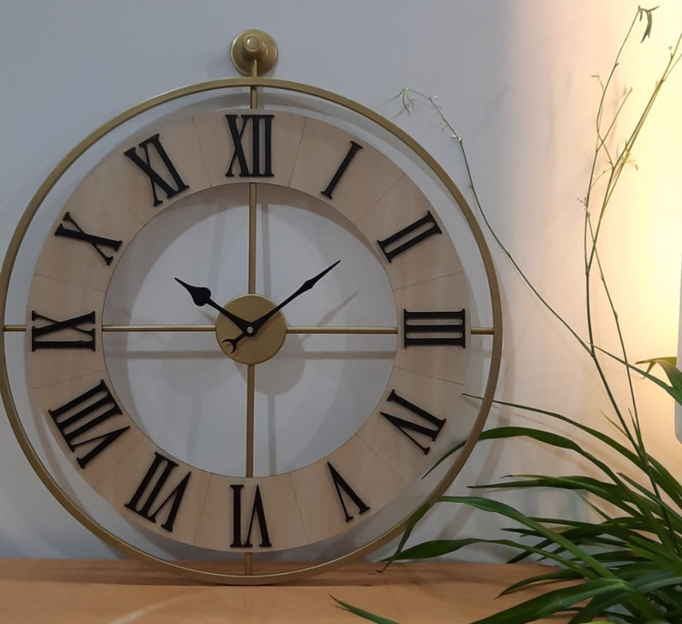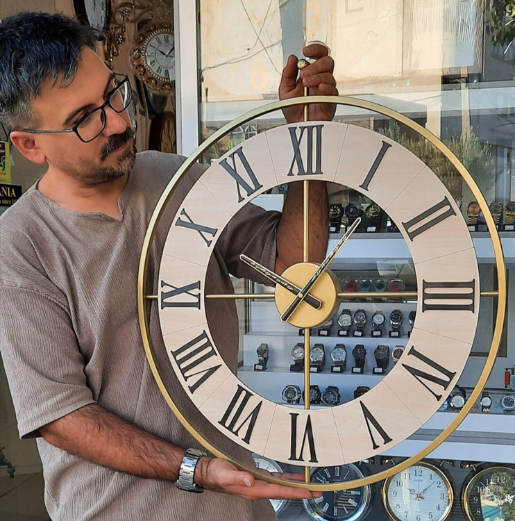 ساعت دیواری با جنس ترکیب چوب و فلز و رنگ کوره ای. دو سال گارانتی موتور از روی فیش واریزی. دارای جعبه و ضمانت.