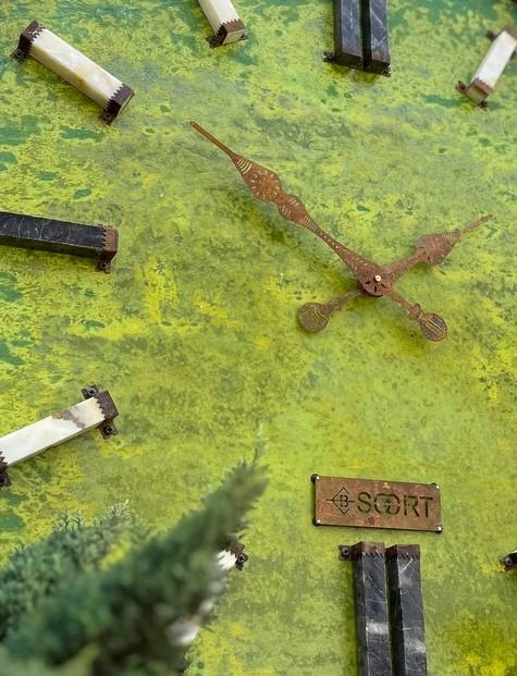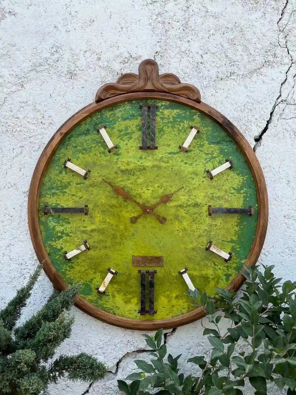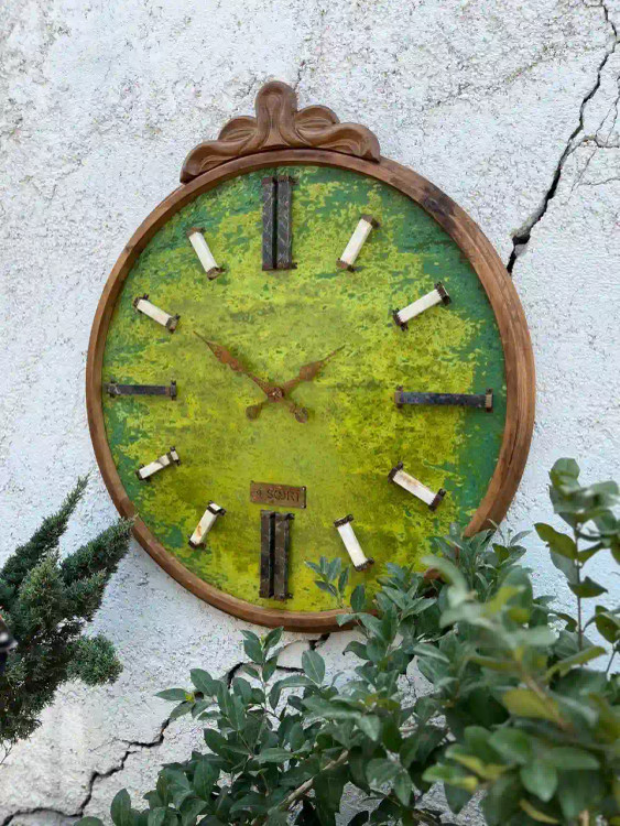 ساعت دیواری لوکس چوبی صفحه سبز شفق بیسورت