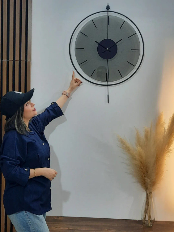 ساعت دیواری فلزی مدرن پاندول دار طلایی مدل لارا