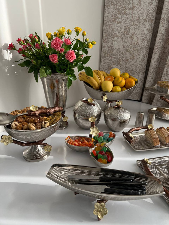 میوه خوری , آجیل خوری ,شیرینی خوری,شکلات خوری,اردو خوری,قندان,رولت خوری,جا کاردی,جا دستمال,قاشق,نمک پاش,گلدان,سینی,شمعدان