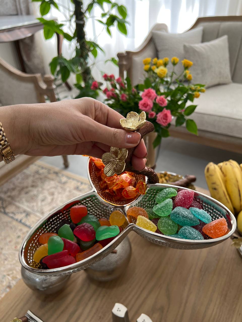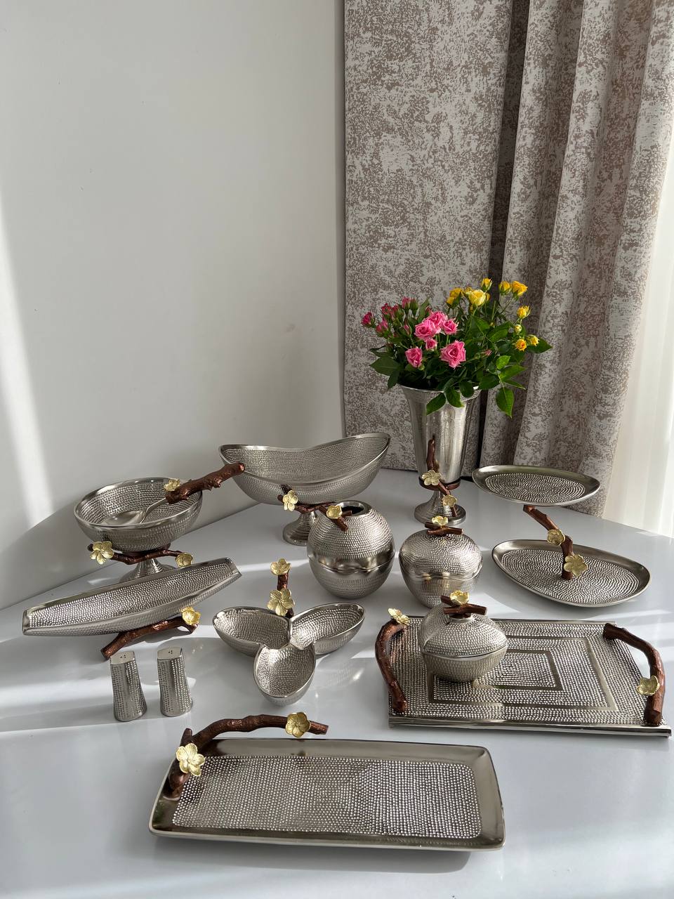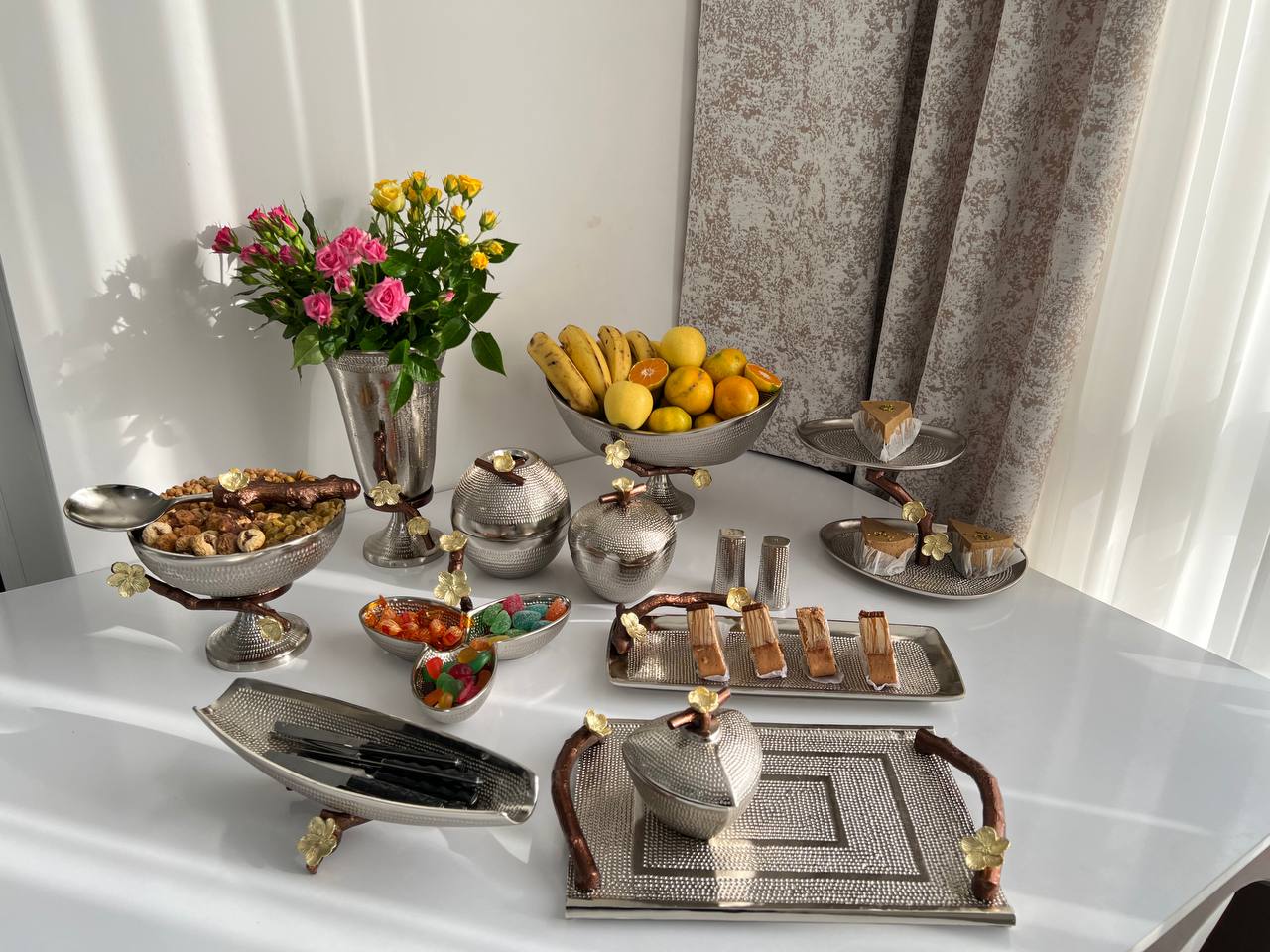 میوه خوری , آجیل خوری ,شیرینی خوری,شکلات خوری,اردو خوری,قندان,رولت خوری,جا کاردی,جا دستمال,قاشق,نمک پاش,گلدان,سینی,شمعدان