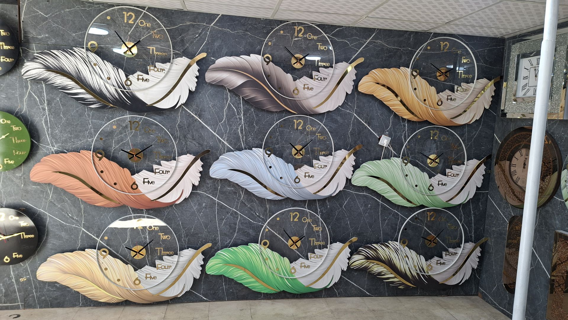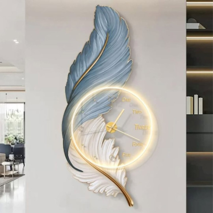 ساعت دیواری زیبای پر سبک مدرن با ابعاد ۵۰ سانت و طراحی افقی و عمودی. این ساعت دارای لاین نوری درخشان است که با ریموت و بدون ریموت کار میکند.